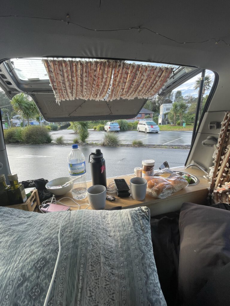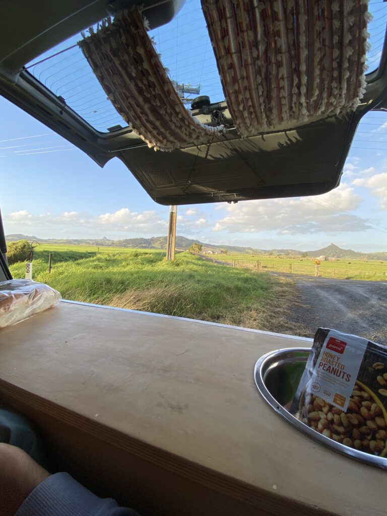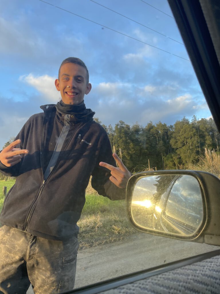 Zu den Kollegen: Um die Chefin zu beschreiben: planlos, ohne struktur, quietschige, nervige und kommandierende Stimme. Ein anderes Familienmitglied der Chefin, war ihr Sohn Haiden. Haiden ist den ganzen Tag Traktor gefahren und zwischendurch mit seinem Quad um die Schafe einzufangen. Haiden hat es geschafft in der Zeit wo wir da waren den Traktor in den Elektrozaun zu fahren und paar Tage später auch noch den anderen Traktor kaputt zu machen, indem ihm beim langsamen 7 km/h Rückwärtsfahren die Hinterscheibe zersprungen ist. Haiden tat so, als ob nichts gewesen wäre und ließ den Scheibenwischer von der kaputten Scheibe fast noch durch den Harvester laufen. Es tut uns leid aber Haiden war der Grund warum wir so oft gelacht haben bei der Arbeit. Übrigens ist Haidens großer Bruder der Chef der Kumara Farm, den haben wir aber nie kennengelernt, weil David in Deutschland ist. An einem Tag hat ein einheimisches Mädchen bei der Arbeit geholfen. Vor der konnte man nur Angst haben… Die hat gegen die Erdklumpen geschlagen als wären es Boxsäcke und ohne erbarmen die Kumaras aus der Erde gezogen. Der Mann für alles war Pete, ein mind. 70 Jähriger Opi, der nur noch die Hälfte seiner Zähne im Mund hatte. Pete ist Traktor gefahren und hat immer alle Kumaras aufgesammelt, die uns runtergefallen sind. Er war immer gut gelaunt und sah mit seinen Zähnen und seiner orangenen Mütze einfach aus wie ein alter Bauer. Die immer gute Stimmung gemacht hat war eine Mutti aus Dargaville mit 10 Kindern. Die hat uns eigentlich die ganze Zeit nur über ihre Kinder erzählt oder was wir leckeres Kochen können. Als wir dann die Premium Kumaras geerntet haben, hat uns die Mutti dann angestiftet Kumaras mitgehen zulassen, da die Chefin nicht geguckt hat… Jetzt haben wir 5 kg Kumaras in unserem Van liegen 😂 Die süßeste von allen war Angela. Eine 60 jährige Omi mit auch nur noch 3 Zähnen, die aber den Plan von allem hatte. Angela hat uns immer dazu angestiftet direkt am ersten Tag bei der Chefin eine Gehaltserhöhung zu fordern. Als dann in der nächsten Woche aufeinmal eine Familienkutsche angefahren kam und eine Raucheromi mit lidl tüte und Turnschuhen ausgestiegen ist, die wohl gemerkt auch nur noch nh handvoll Zähne im Mund hatte, da war uns klar, dass Unternehmen ist am Arsch. Zitat Tim: „ Die sieht aus wie der Tot auf zwei Beinen“. Dies stellte sich jedoch ganz anders heraus. Als unsere Musik auf dem Harvester anging, setzte sie aufeinmal ihre neon grüne Attensonnenbrilme auf und fing an zu den Englischen Charts zu Tanzen und zu Singen. Nun zu den Backpackern. Ein Backpackerpärchen sind Marc (Deutsch) und Debby (Taiwan). Beide sind 32 und eigentlich auf den ersten Blick sehr nett. Stellt sich dann aber heraus, dass sie viel zu anstrengend und egoistisch sind. Wegen denen mussten wir einen Duschplan aufstellen und uns auch immer ohne Ausnahme daran halten. Nach der Arbeit sind die immer ganz schnell heimgefahren, damit die die ersten sind, die Kochen können. Ein weiterer Backpacker war Jakob (32 aus der Tschechei). Der hatte soviel Bock auf den Job, dass er einfach nach Tag 3 abgehauen ist und nicht mehr wieder kam. Christian war ein 30ig jähriger deutscher Klemptner, der seinen Job gekündigt hat und einfach mal nach Neuseeland geflogen ist. Die letzte Backpackerin war eine französin, die wirklich sehr nett war aber leider sehr schüchtern.