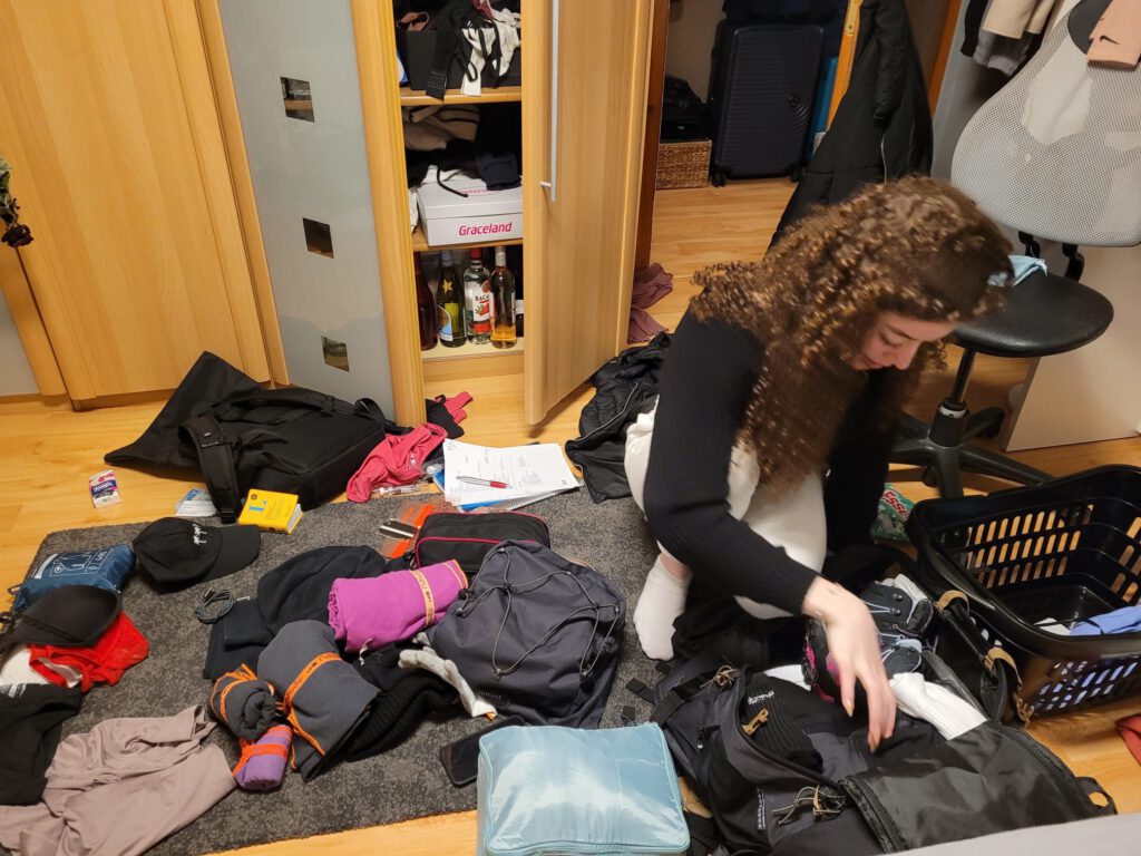 Packen startet. Mein Motto: Sachen die kein Platz wegnehmen können mit… stellt sich heraus, auch bei tausend Sachen, die eigentlich keinen Platz wegnehmen, ist der Rucksack irgendwann voll🥴